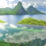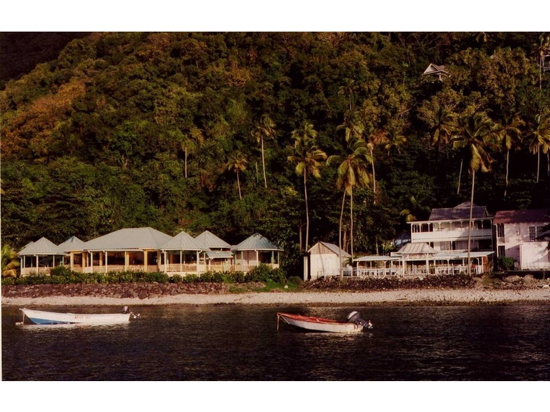 Anse des Pitons (Pitons Bay) in serata. Il panorama che si gode dal mare e' mozzafiato, visto che si entra in una delle piu' belle baie del mondo.